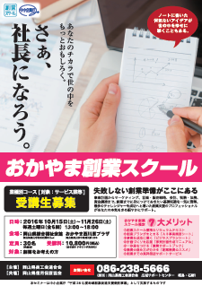 岡山県商工会連合会主催で、「おかやま創業スクール」が開催されますのでお知らせいたします。