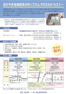 一般財団法人岡山経済研究所主催で「地域経済分析システム(RESAS)セミナー」が開催されますのでお知らせいたします。