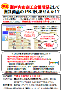 販売促進・PR活動として「瀬戸内市商工会推奨品」を募集しておりますのでお知らせいたします。