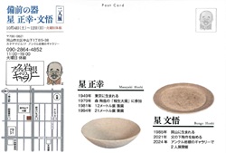 2025/09/24 ― 備前の器 ― 「星 正幸・文悟 二人展」開催のお知らせ ――― 備 前 の 器 ――― 〜〜〜 星 正幸・文悟 二人展 〜〜〜 長船町の備前焼作家・星 正幸さんが、三男の文悟さんと 展示会を開催されます。 ◇日時 2025年10月4日(土)〜12日(日) 11:00〜19:00(火曜日休廊) ◇場所 アンクル岩根のギャラリー 岡山市北区中山下1丁目5-38 カタヤマビル1階 ◎関連リンク ![]() |